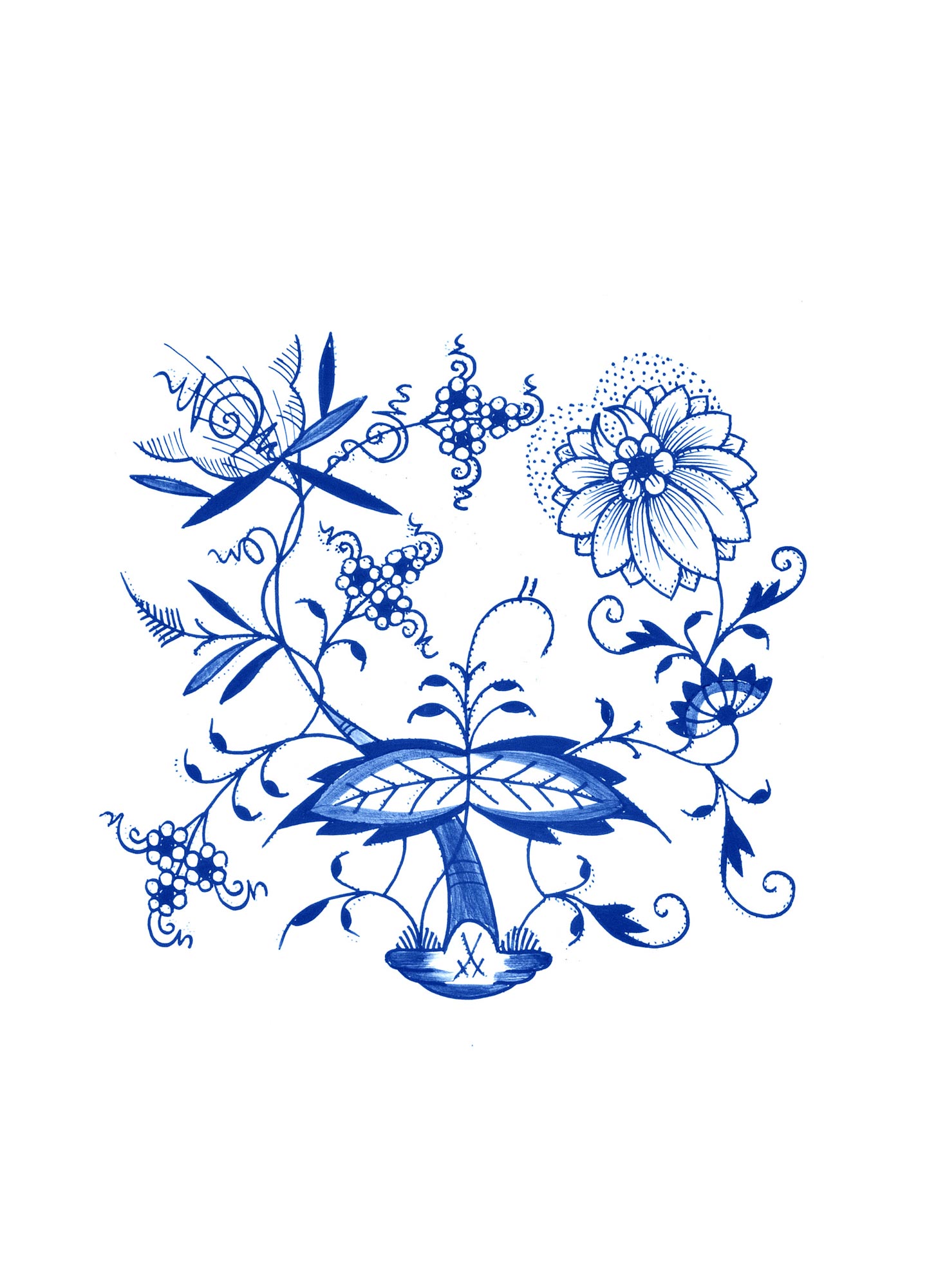 Im Jahr 2004 erfährt das historische „Zwiebelmuster“ eine zeitgemäße Überarbeitung. Anstatt der gleichmäßig vollflächigen Bemalung wird die Crysanthemenblüte asymmetrisch auf dem Tellerspiegel angeordnet. Der Bambusstamm mit Ranken, zarten Blüten und Blättern sowie das Doppelblatt vom klassischen Dekor sind geblieben. Hingegen sind die Früchte vom Tellerrand verschwunden und der Dekor erscheint aufgelockert und das strahlende Weiß des Porzellans wird stärker betont. Auch auf der Tasse finden sich die Chrysantheme und der Bambusstamm mit Ranken als eine reduzierte, weniger kompakte Bemalung wieder - Umgeben von zarten Ranken scheint der Bambus nahezu aus der dieser herauszuwachsen. Die Früchte sind auch hier verschwunden. Nur eine Zwiebel auf der Untertasse erinnert noch an ihre Vorgänger.