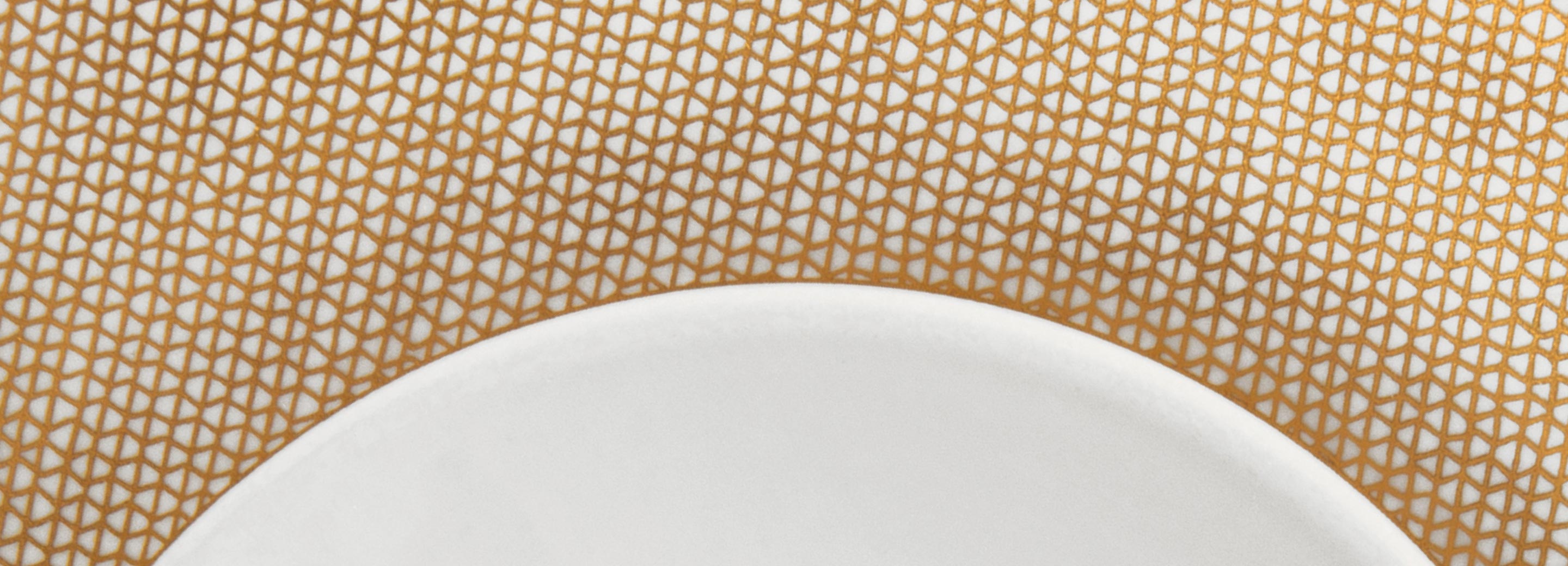 In der Dekorvariante „Gold“ erhält das Porzellan einen opulenten goldenen Fond, für den echtes Poliergold verwendet wird. Nach dem Brand muss es mit einem Achatstift poliert werden, um im charakteristischen Glanz zu erstrahlen. Sinnlich zurückhaltend gebiert sich daneben der Dekor „Mesh-Gold“.