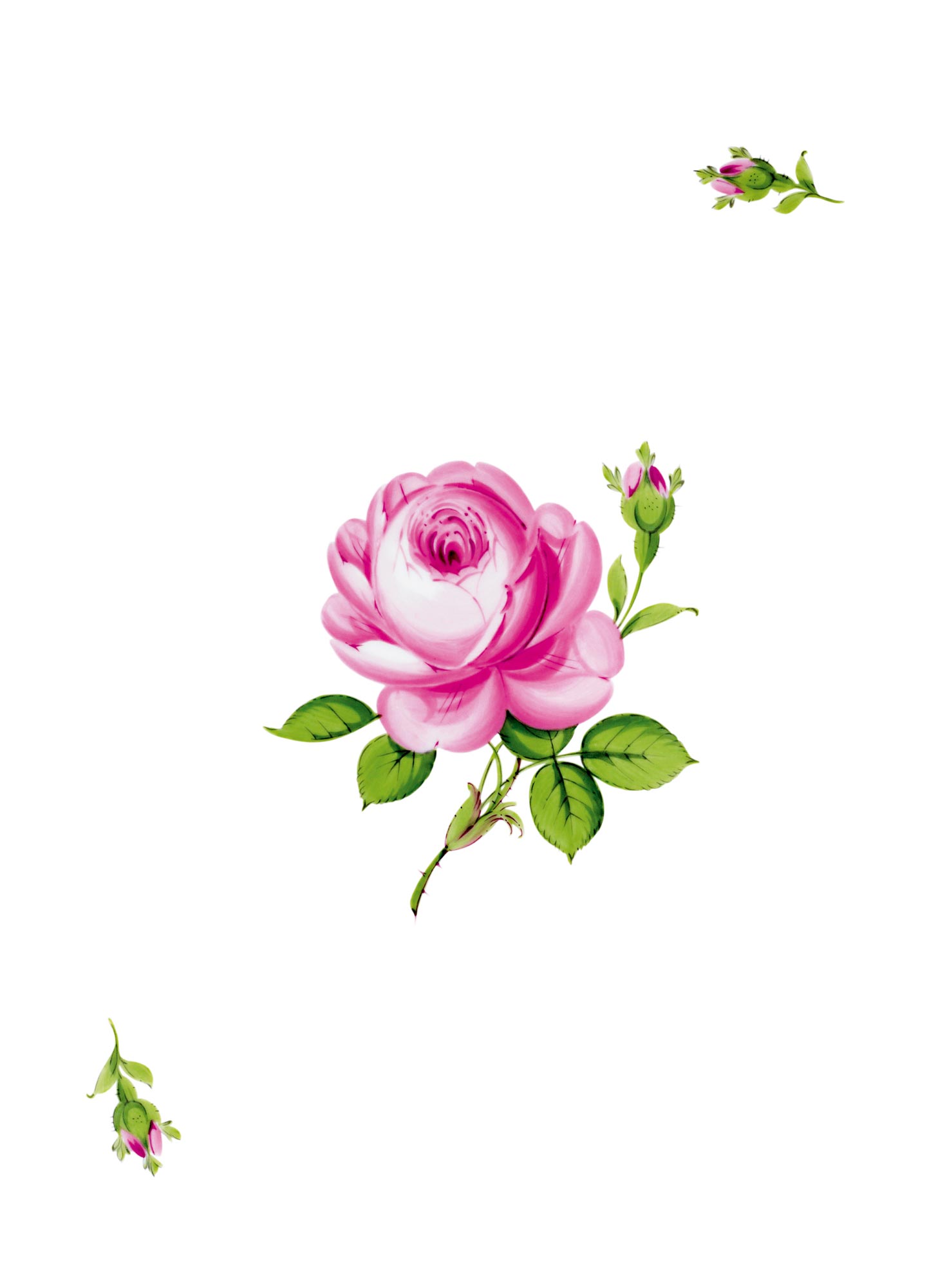 Unter den Dekoren gehören die zwischen 1815 und 1845 entstandenen „Gestreuten Blümchen“ zu den beliebtesten der Manufaktur. Sie sind eine typische Schöpfung des Biedermeier. Zu jener Zeit bedienen sich die Porzellanmaler der Manufaktur floraler Symbolik, um Gedanken und Empfindungen zum Ausdruck zu bringen. Die Rose nimmt als Sinnbild der Liebe unter allen Blumenmotiven eine Sonderstellung ein. Im Dekor wird sie als vergrößerte Mittelblume von mehreren vielgestaltig variierten kleineren Rosen umstreut. Die detailreiche Ausarbeitung bezeugt die botanische Kenntnis und das meisterliche Handwerk der Porzellanmaler.