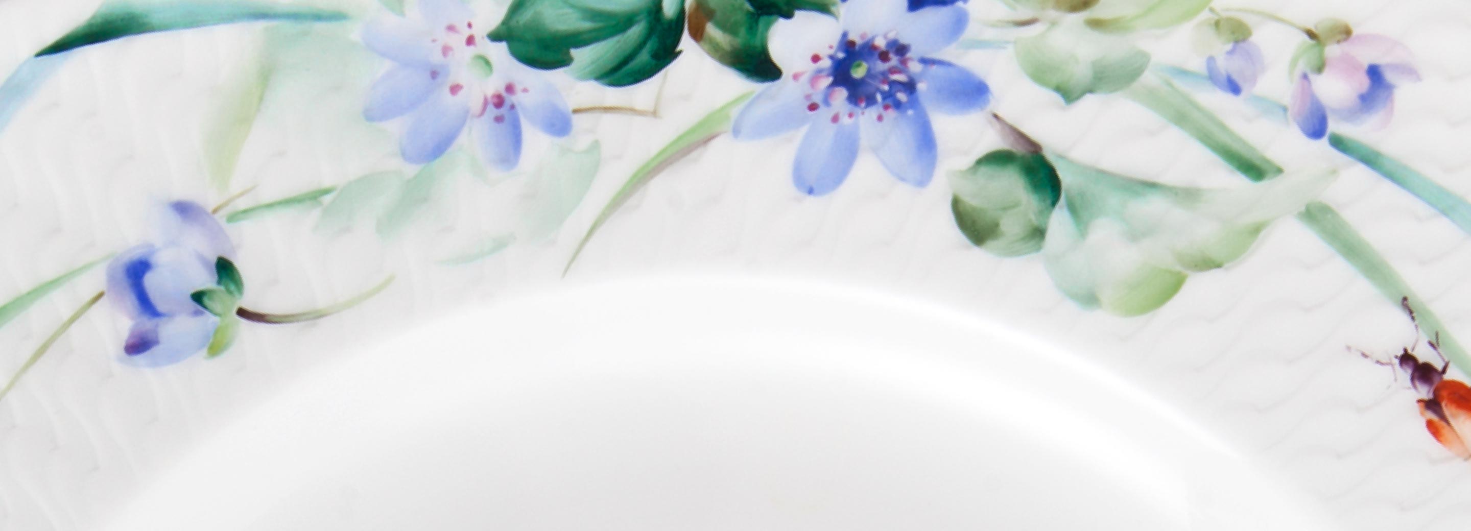 Mit „Waldflora mit Insekten“ greift MEISSEN Motive aus heimischer Forst und Flur auf. Die an Aquarellgemälde angelehnte Malerei überträgt deren fließende Dynamik und pastellene Farbgebung auf Meissener Porzellan. Nur durch mehrere Dekorbrände erhält sie ihre Leuchtkraft.