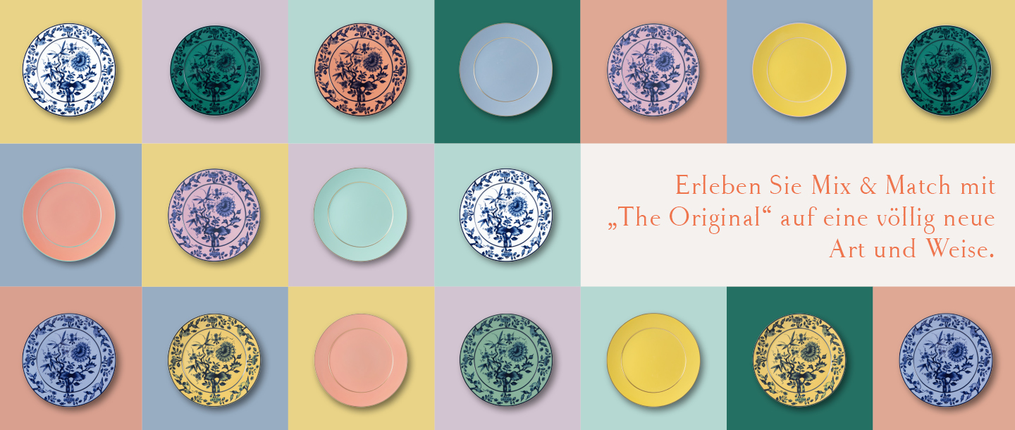 Die Wiedergeburt einer IkoneDie Basis für „The Original“ bildet eine Variante des Zwiebelmusters aus den Jahren zwischen 1733 und 1735. Hinzugefügt wurden dem ursprünglichen Dekor die Gekreuzten Schwerter im Bambusstamm, welche das Meissener Original klar von möglichen Nachahmern unterscheidet. Das Dekor wurde auf unterschiedlichen Farben umgesetzt, die gleichzeitig die Basis für die neue MEISSEN Kollektion „Urban Colors“ bilden.