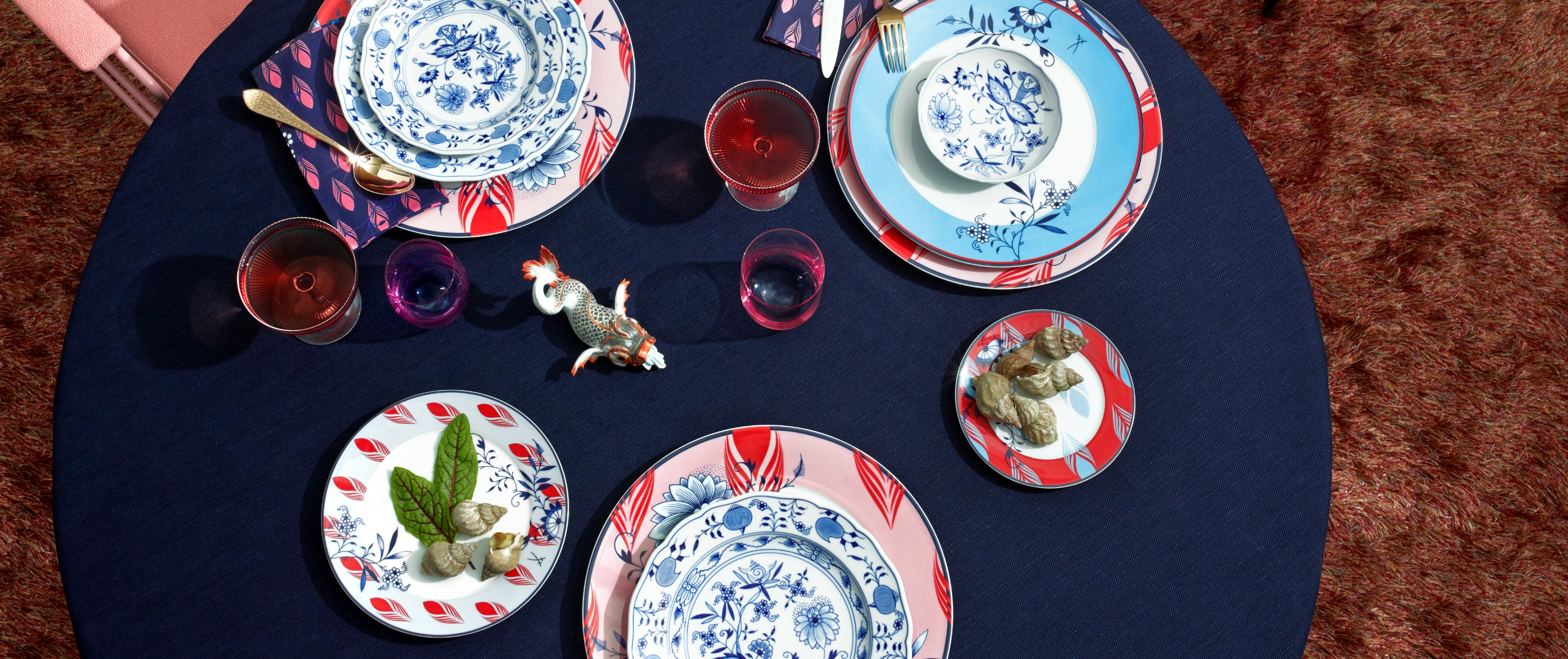 Individuelle Selbstbestimmung steht hinter dem Megatrend „Individualisierung“ und beschreibt damit eine ganze Generation auf der Suche nach persönlicher Identitätsbildung. Diese individuelle Auslebung zieht sich durch alle Lebensbereiche und findet auch in der Tisch- & Tafelkultur ihren Platz. Nach dem Prinzip des „Mix & Match“ wird dabei Vielfalt, Farbe und Individualität auf die heimische Tafel gebracht. Der Kreativität kann dabei freien Lauf gelassen werden, denn gerade die Kombinationen aus liebgewonnenen älteren Porzellanservices mit neuen Porzellanen ergeben eine spannende Neuinterpretation moderner Opulenz für eine unvergleichliche Tischgestaltung.Damit sich jeder auf seiner Weise verwirklichen kann, bietet unsere Tellerform „N°41“ die ideale Bühne. Dieses zeitlose Design passt perfekt in jedes Interieur und lässt sich zugleich mit seinen vielseitigen Dekoren nach Herzenslust kombinieren. Auf „N°41“ haben wir neun verschiedene historische MEISSEN Dekore neu interpretiert. Vom verspielten „Royal Blossom“, ikonischen „Zwiebelmuster“ über das berühmte Markenzeichen „Swords“ bis hin zum beliebten „Wellenspiel“ lassen sich die Interpretationen nicht nur perfekt untereinander, sondern auch mit unseren anderen Tafelservices kombinieren. Diese enorme Vielfalt ist ganz im Sinne des „Mix & Match“ – Tradition und Moderne, Farben mit Strukturen und Mustern gekonnt zu verbinden.