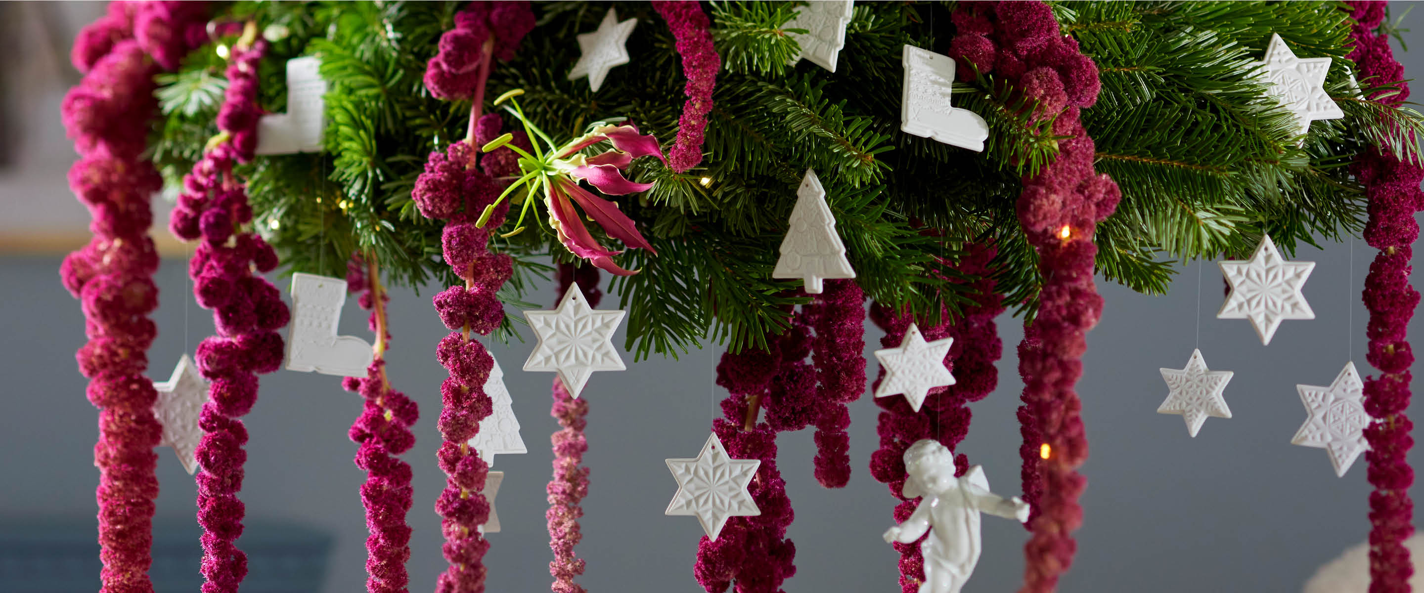 Ganz besondere Allrounder sind dabei unsere MEISSEN Biskuit-Anhänger. Diese, aus unglasiertem Porzellan gefertigten Kunstwerke, fügen sich harmonisch in jede Dekoration ein. Die rein weiße Farbe erinnert an frisch gefallenen Schnee und sorgt in Kombination mit dem satten Grün des Tannenbaums für einen dezenten, eleganten Look. Die Anhänger von MEISSEN, darunter Sterne, Mondmotive, Stiefel, Weihnachtsbäume und Engel, sind detailreich verziert und erinnern an die Schönheit von Eiskristallen.