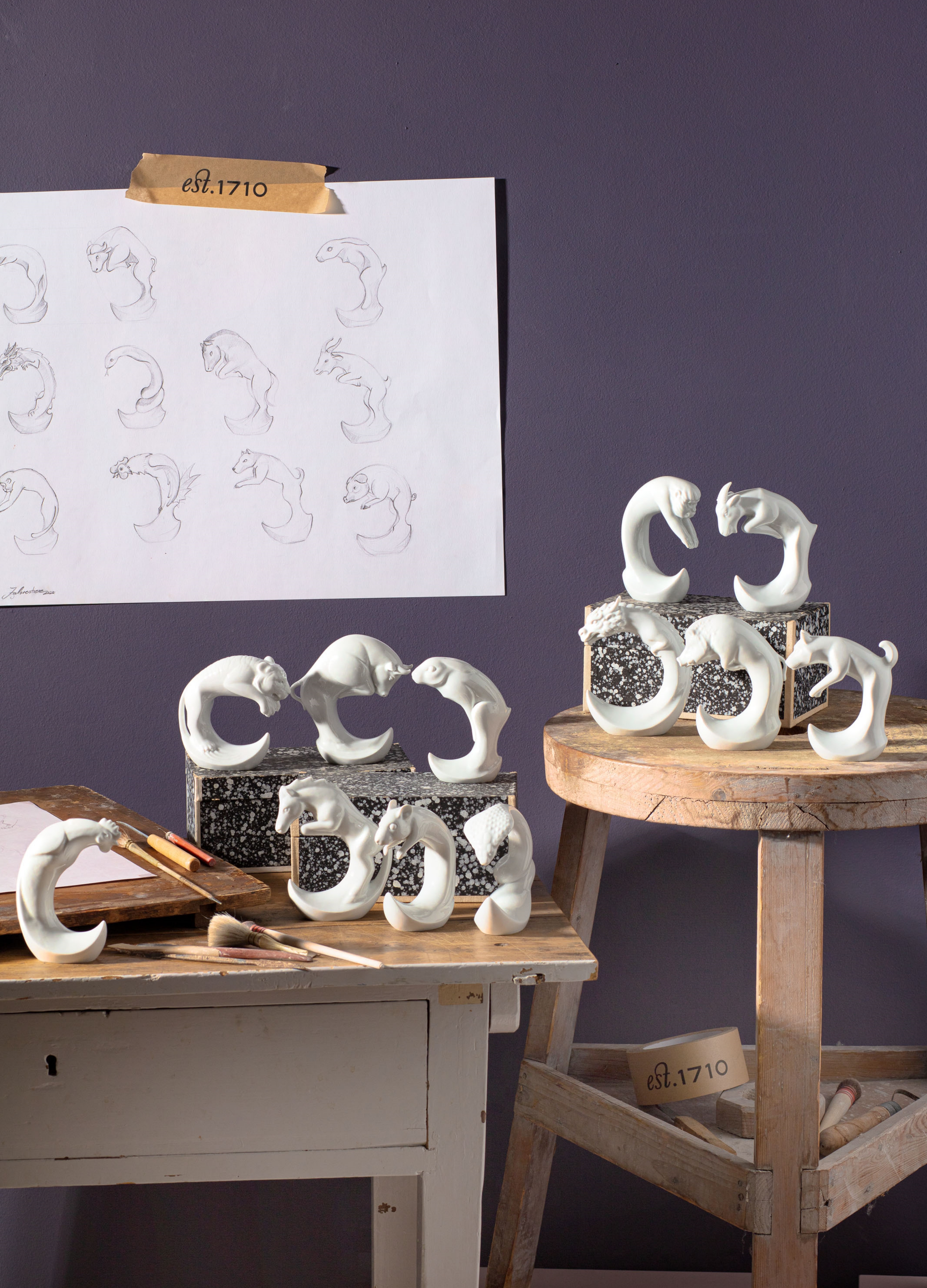 Die Plastiken der MEISSEN Künstlerin Maria Walther sind so Vielfältig wie die Geschichte der Manufaktur. Dabei stehen ihre Hingabe für Design und Formensprache immer wieder im Mittelpunkt der künstlerischen Auseinandersetzung mit neuen Themen. 2021 widmet sich Maria Walther den 12 chinesischen Tierkreiszeichen und interpretiert diese mit einer modern zeitgenössischen Formensprache, die das strahlend weiße Meissener Porzellans besonders eindrucksvoll zur Geltung kommen lässt.
