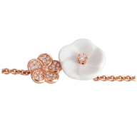 Edelsteine und Perlen setzen zusätzliche Akzente. Diamanten bringen ein präzises Funkeln in die Konturen der Colliers, Saphir und Tansanit vertiefen das Farbspektrum in Blau und Violett, Tourmalin ergänzt es um weitere Nuancen. Perlen in verschiedenen Größen und Farbstimmungen geben vielen Halsketten eine weiche, fließende Ausstrahlung, die mit dem kühlen Glanz der Metalle kontrastiert. Zahlreiche Details entstehen in Handmalerei auf Porzellan und verleihen jedem Schmuckstück eine individuelle Handschrift. Damit die Kombination aus Metall, Stein und Porzellan ihre Wirkung lange bewahrt, empfiehlt es sich, die Hinweise der Manufaktur zu beachten, vom sanften Spülen von Hand bis zur sorgfältig abgestimmten Reinigung im Ultraschallbad bei ausgewählten Modellen.