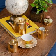 Zu einem gepflegten Tisch gehören oft auch die kleinen, leisen Helfer, die den Ablauf ordnen, ohne Aufmerksamkeit zu verlangen. Eine kleine Zuckerdose hält die Dosierung präzise, und ein zierliches Milchkännchen ergänzt den Moment, wenn der Tee milder werden soll. So entsteht Luxus nicht als Geste, sondern als Stimmigkeit, die man beim Servieren sofort spürt.