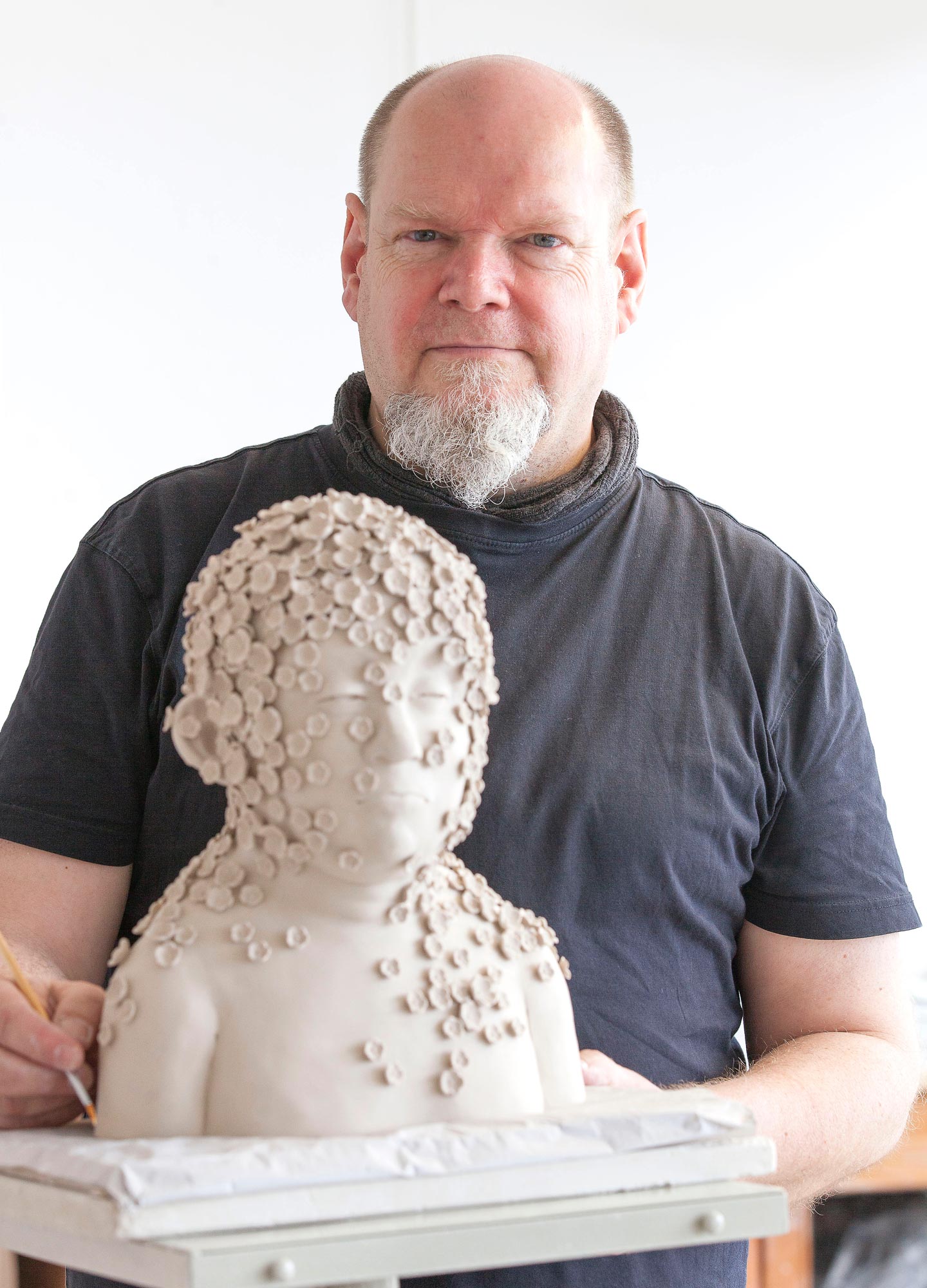 In 2017, the first collaboration between the Meissen porcelain manufactory and Olaf Stoy resulted in a series of unique busts. Born in Dresden in 1959, Stoy works in neighbouring Freital. Following his training as a pottery former in the Saxon Porcelain Manufactory of Dresden, he worked while also studying graphics and sculpture at the Dresden College of Fine Arts from 1979-1981. From 1978-2003, Stoy was a mould caster and retoucher and eventually head modeler in the Freital manufactory. Just two years later, he founded his own art and design studio in which he continues devoting himself to working with porcelain. In addition to porcelain, Stoy also has a passion for literature and regularly publishes prose and poetry.