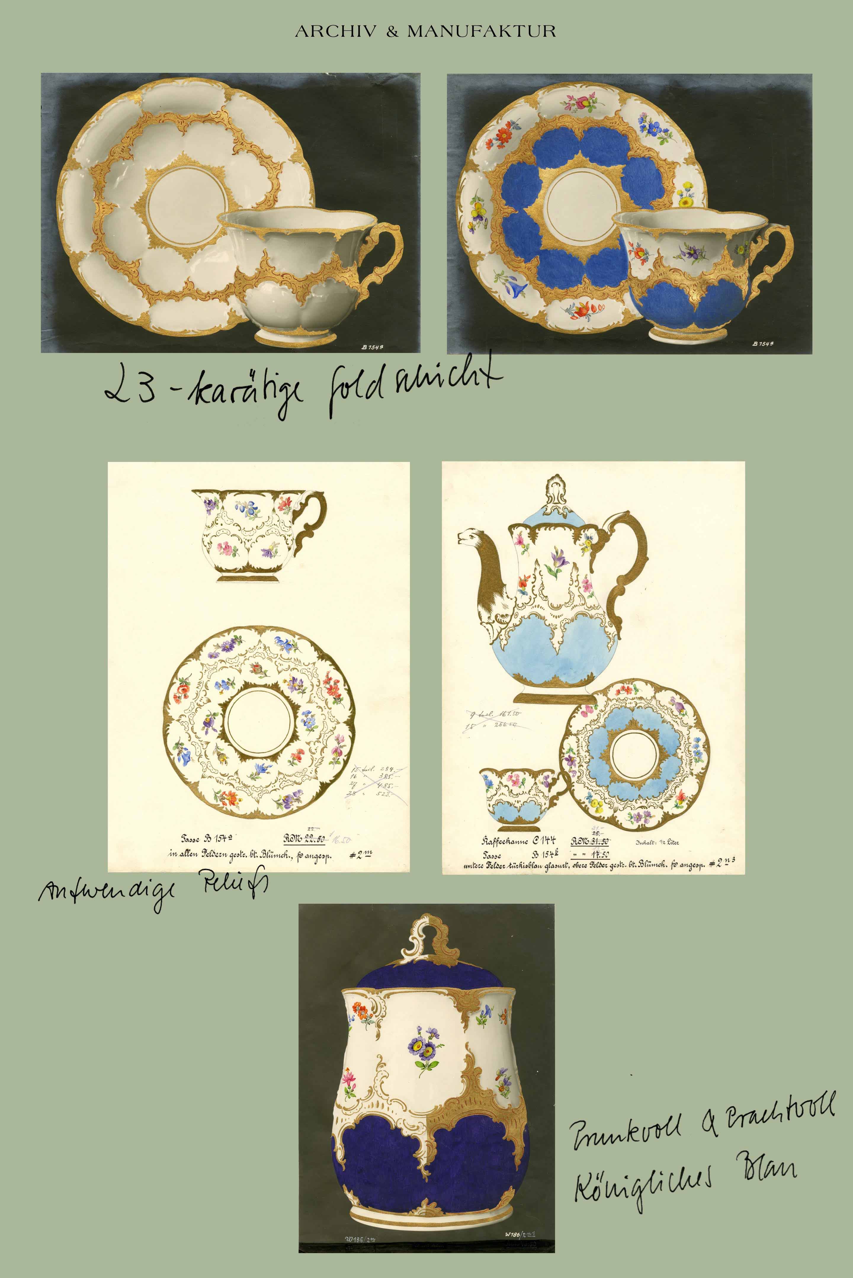 “With its royal blue colours, elaborate reliefs, and splendid trim of 23-karat gold, the ‘B-Form’ service is a masterpiece of European dining culture.”