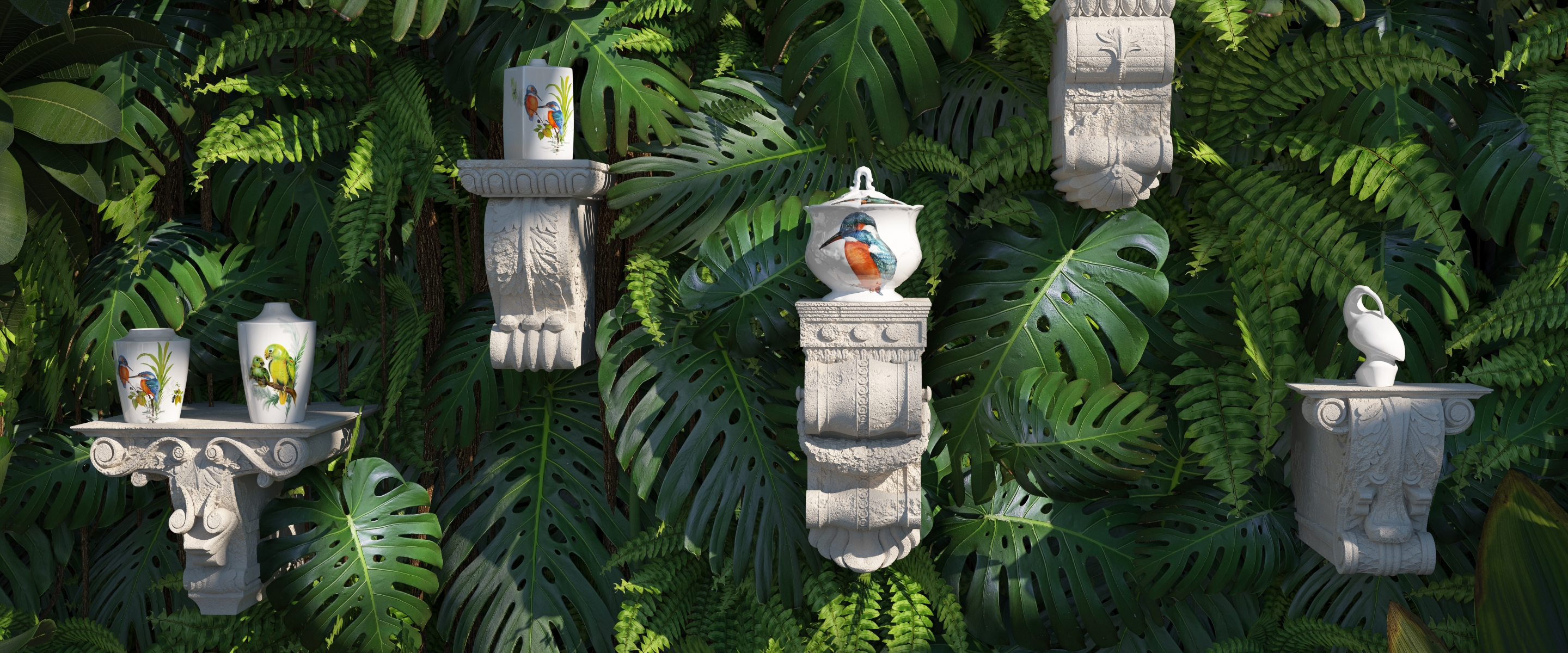 Use the beauties of nature, immortalised in a hand-painted decor on white gold or in sculptural figures, to skilfully set the scene for your interior.