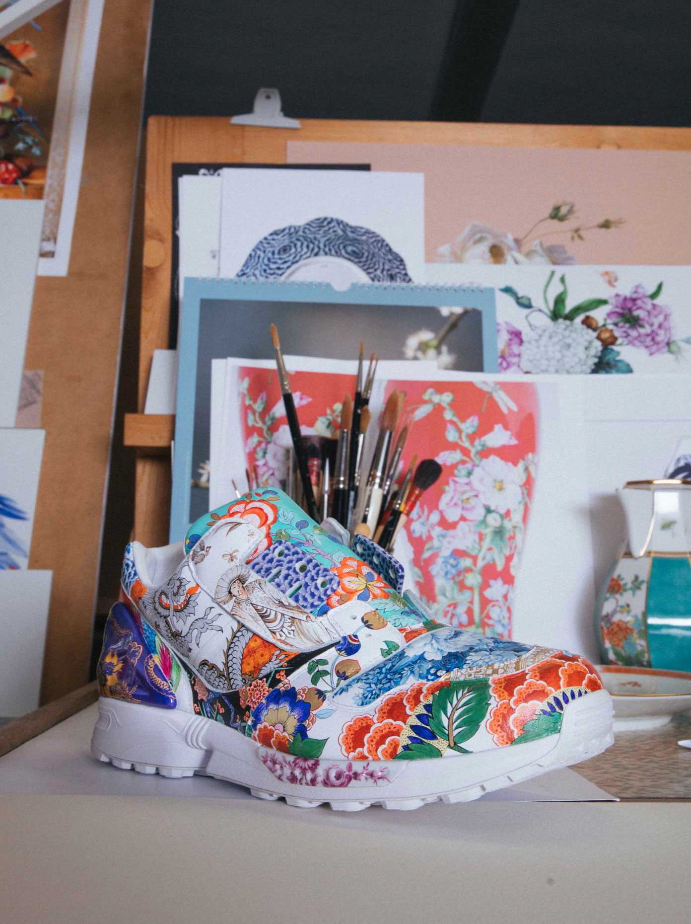 Precision. Craftsmanship. Heritage. The ZX8000 Porcelain sneaker is a piece of history like no other. For this singular pair, two pioneers of German design have come together, bringing generations of expertise to one of the world’s most iconic silhouettes. Featuring premium adidas leather hand-painted by Meissen, marvelously hand-made Meissen porcelain overlays, and weighing exactly 950 grams, this inimitable pair of sneakers has been assembled over a six month period, moving between Herzogenaurach and Meissen throughout the process of its creation.