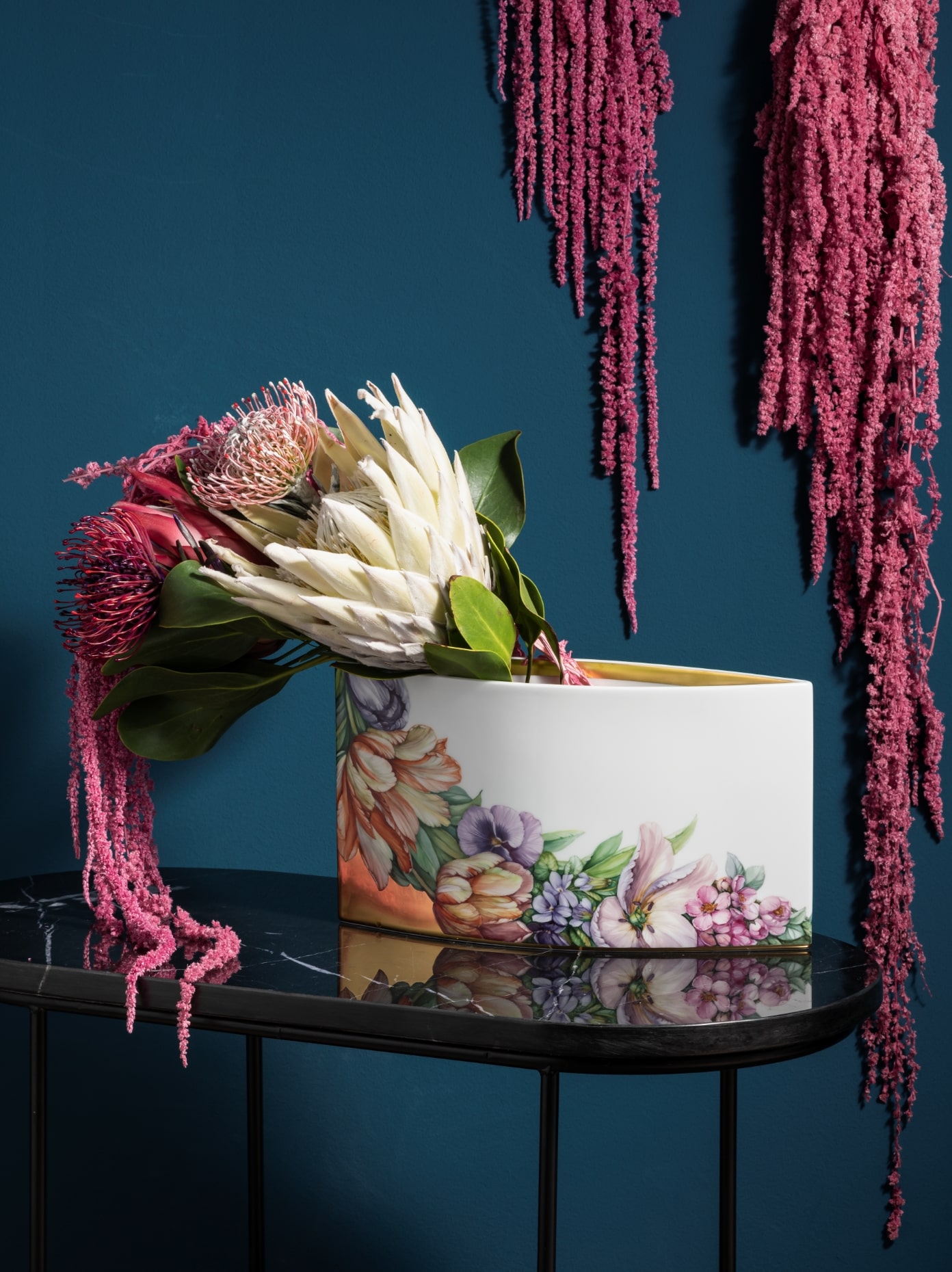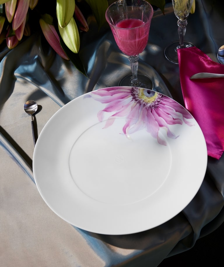 The tradition of flower painting at MEISSEN has continued to grow steadily to this day, undergoing numerous enrichments and refinements along the way. The porcelain painters of today are inspired not only by nature, but also by the artistic creativity of their time. One example is the new “Giant Bloom” collection with expansive flower paintings that unfold across the purist “MEISSEN® Cosmopolitan” form, underscoring the modern dining culture of our manufactory. With the filigree "Blue Orchid", one of Professor Heinz Werner's most popular designs from 1970 has been reinterpreted and transported into the modern age. The well-known illustrator Olaf Hajek also breaks down the boundaries between reality and imagination in his works for MEISSEN and creates his very own visual language of fantastic gardens and paradisiacal fairytale worlds with breathtaking floral elements.