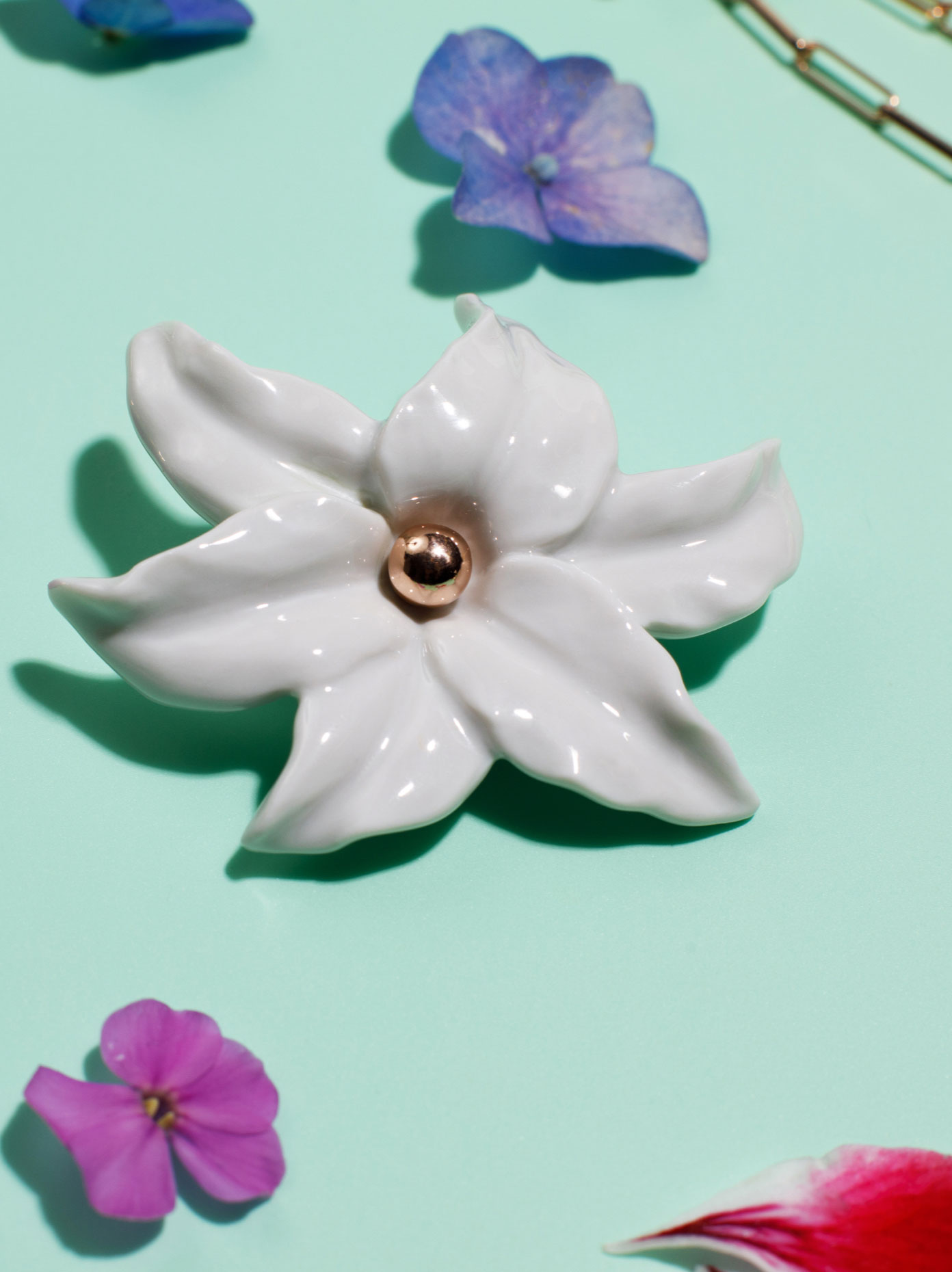 Its versatility is shown not only in the design, but also in the way it is worn. While in the past it was more common to wear the brooch on a blazer as a statement piece, today there are no limits to the imagination. Whether on the waistband, on a hat, in the hair, as a button replacement or on a bracelet - the possible uses are as varied as the piece of jewelry itself.
