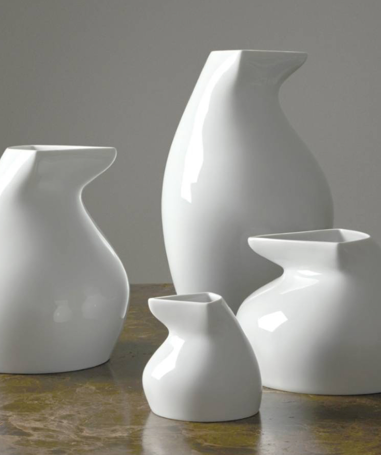 But bulbous vases can also evoke a pleasant ambience with their elegant curves. Perfect for lush bouquets, they also offer endless scope for creative design. For our "Antarctica" collection, our porcelain designers even drew inspiration from penguin silhouettes. Hardly any other animal stands for connection, affection and security as much as the penguin, gliding warmly and snuggly through the ice age. Thus, not only the shape, but also the symbolism stands for the energy dispenser Curved Cocoon.