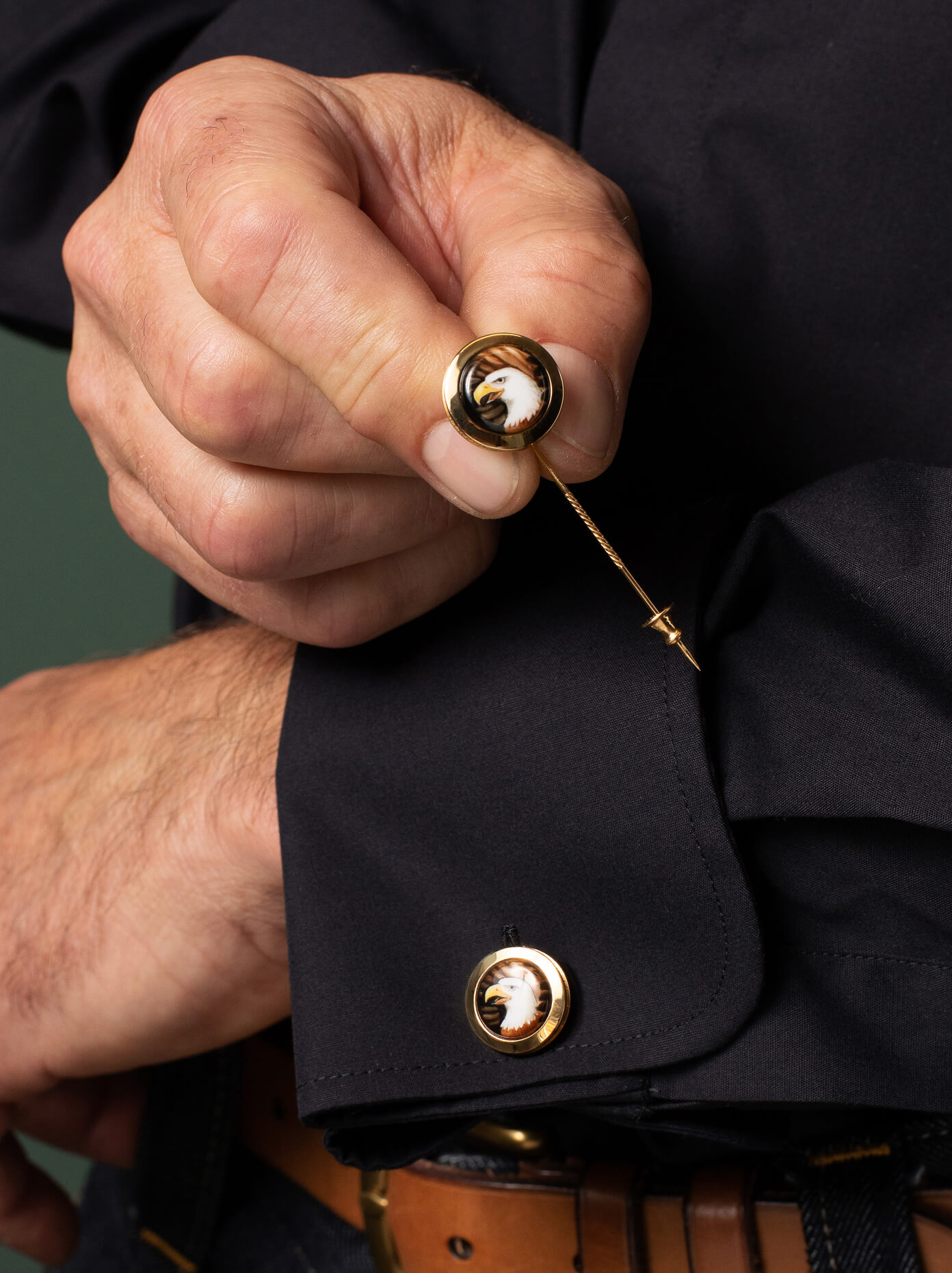 What is modern captures the spirit of the times—and sometimes that can also be something tried and true. Lapel pins are making a comeback and are another accessory that subtly exudes elegance. These small details can make a big difference and are a sign of good taste. Modern lapel pins are often inspired by artistic motifs and made from high-quality materials, making them true works of art. Our lapel pins, made from silver or gold with hand-painted porcelain pieces featuring the Ming dragon, the blue Indian flower, or many other motifs, add that certain extra to any suit and are an expression of individuality and style consciousness.