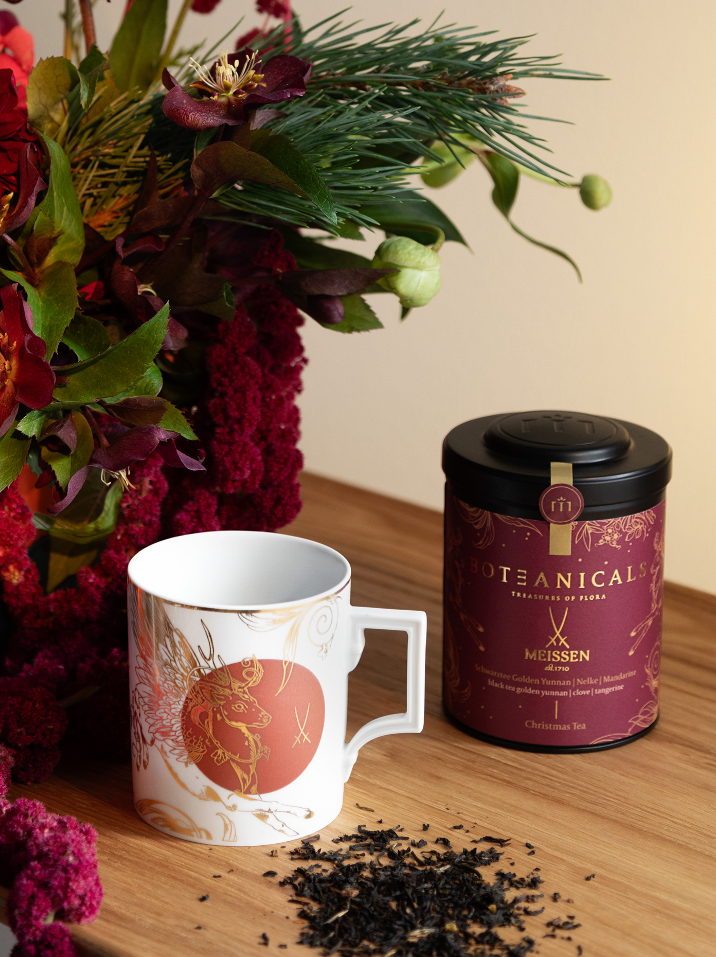 This fruity, citrus note of the mandarin gives the exclusive Christmas Tea, in combination with black Golden Yunnan tea and a spicy clove, its unparalleled aroma. An exclusive tea blend created in collaboration with the luxury tea manufacturer BOTEANICALS, found in a fantastic gift set with the Peryton handle mug from our current Christmas collection in our shop.