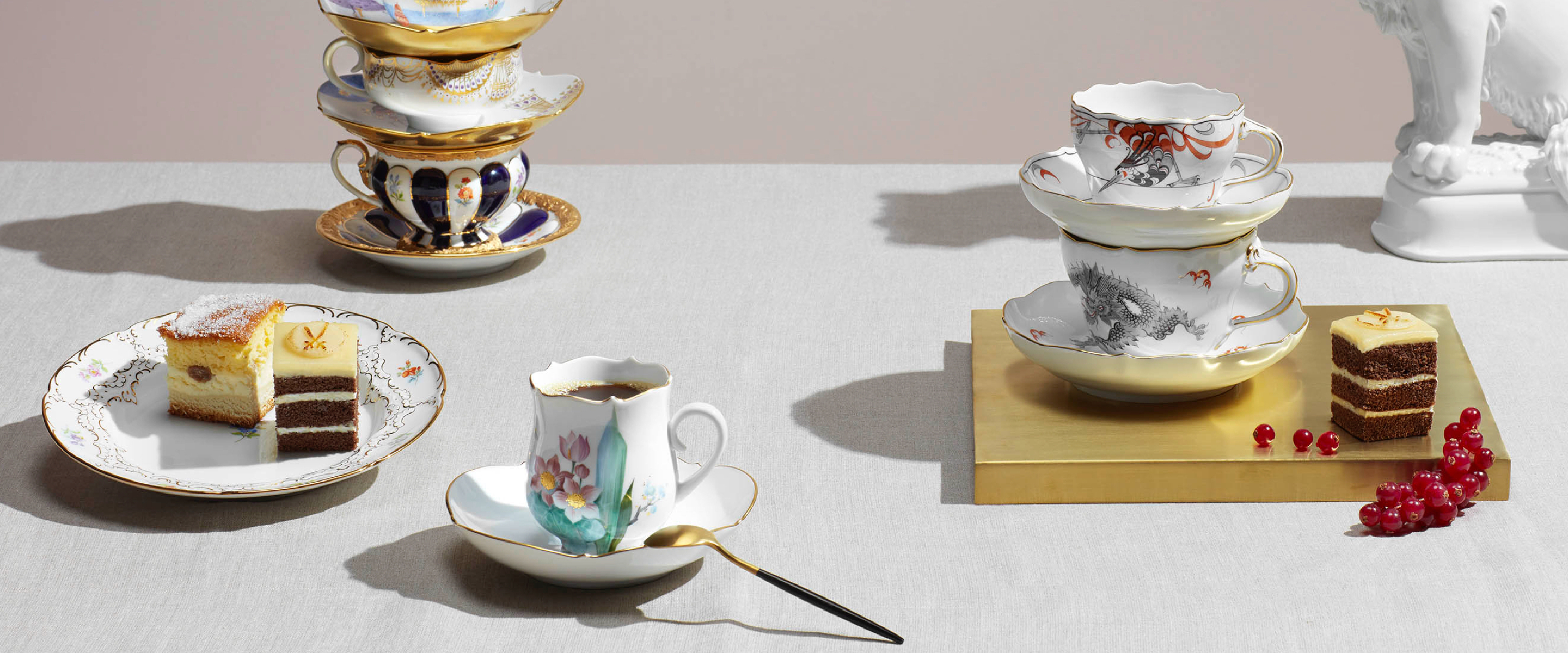 Take a seat at a richly laid table. Let your gaze wander over the opulent table and be a guest at MEISSEN. While you enjoy tea, coffee and chocolate made of Meissen porcelain in designs from over 300 years of manufactory history, you will hear all kinds of instructive stories and amusing anecdotes. Of course, the exquisite choice of MEISSEN plates also follows its destiny and is richly stocked with all kinds of finest cakes, tarts and pralines.