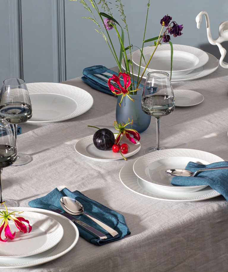 The sweeping waves of our “Waves Relief” collection are reminiscent of the gentle sound of the sea, which radiates calm and serenity and thus offers the perfect stage for Asian dishes. A special highlight are our “Waves Relief” products in the popular bisque porcelain. It is porcelain in its most original form and gives the relief an even more intense expression thanks to its velvety matt surface. This creates not only a visual highlight, but also countless possible combinations with other services.